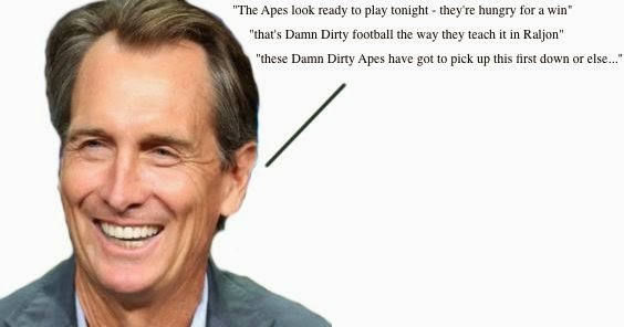 shocking retort to his captors. I think the Apes or the “Damn Dirty’s” captures the spirit of the modern game and gives former Redskins fans something to cheer about. The color commentary by Chris Collinsworth alone validates the possibilities of this new mascot:
