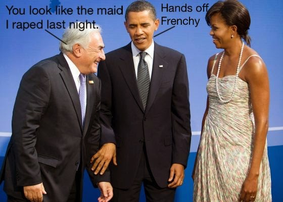 Can you see la différence? Maybe with their cloths off there is none for a Socialist like DSK. I’ve had my share of “conversations” about rape culture or the war on women with a range of women – from well heeled soccer moms to Code Pink harpies – and one thing I’ve deduced is that these angry females are, in their day to day life, dealing with “men of the Left” – guys like DSK who talk a good game, but treat their lady friends like whores. It’s frustrating, I’m sure, to be raped by a committed Socialist who just finished giving a speech where he said all the correct things and decried the misogyny and male chauvinism of the Capitalist system – but perhaps, just maybe, the women of this world should consider their plight under the Socialist system and reconsider their allegiance.
