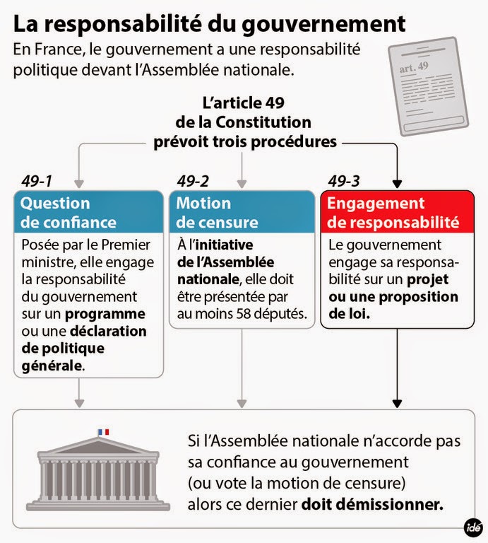 French Socialists are in meltdown because President Holland has invoked Article 49 in an effort to save his nations economy. Threatening the 35 hour work week has put the legitimacy of the French Government in question (sort of) but not to worry, the Socialists will never risk their jobs, fed by the teat of the State, over principle.