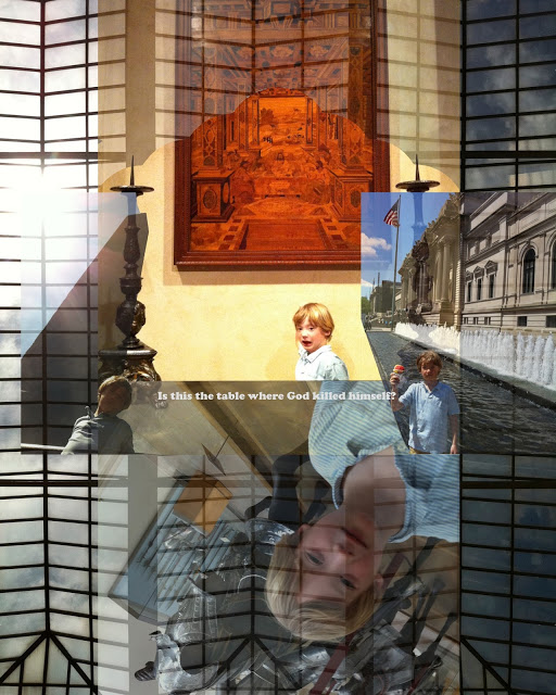 A few years ago I was touring the Met in NYC with my young boy (age 8 or 9) and as we wandered around the artwork we came upon a huge marble table. “Is this the table where God killed himself?”, he asked. “Yep”, I answered – what else was I to say?