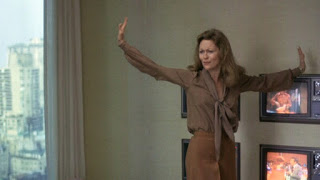 - The opening exterior shots of the 4 network glass and steel citadels and the “I’m mad as hell” apartment building shots.