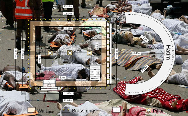 Interesting. Turns out that Muhammad made some “improvements” on the house and died before he could accurately finish the job so a cube it has remained. At the end of every year – the Autumn equinox – pilgrims from all over the world travel to Mecca to pray to the house and wander around. This year, as in years past, things got out of hand and people died – just another day in the desert kingdom – not at the old house but on their way to stone the 3 pillars of the devil (Abraham did it first or something like that). One of these “walls” is actually a obelisk emerging from the ground and that should give every American pause to contemplate the religious and psychological significance of this act.