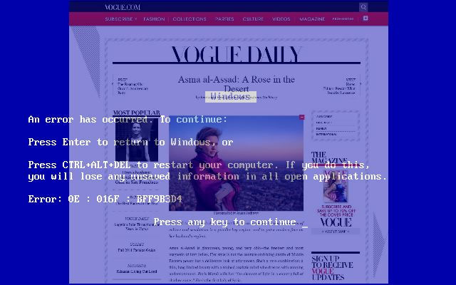 Of course, none of that would be so bad if not for the fact that the current US Administration reads Vogue and swallows it’s stories hook, line and sinker. Commence catastrophic software failure. Now Vlad Putin is doing another hard reboot after Obama’s hacking around triggers a blue screen of death and crashes the system. When will they learn that cultures are not hardware and people are not software? Maybe after World War 3.