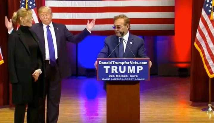 And speaking of paying for it all, let’s have a look at our lead trade negotiator with China starting January 2017 – The Donald pulled him up on stage for a brief endorsement at last nights charity event for the Vets.