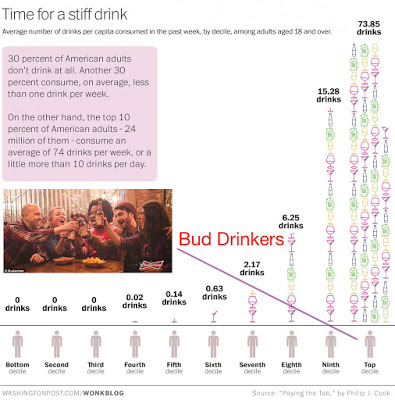 As anyone who takes the trouble to look up the numbers can tell you, 80% of all alcohol sales are generated by about 20% of the population and that’s a generous fudging of the numbers because 10% of that 20% are pikers. The real money comes from the 10% and in America those guzzling guys and gals drink Bud – about $10B worth of suds per year. So it comes as a surprise that the King of Beers would hire the Queen of England (or at least, her proxy) to lecture the freeborn American citizen about drinking, driving or anything else in the middle of a secular national Holliday but that’s exactly what they did during last nights Super Bowl. It’s downright un-American to watch this English prig bitch out the US beer lovers who might enjoy roaring down a dirty back road with a cold one in hand and a case of Bud on ice in the back seat. Piss off Queenie – stroll on down to the Pig & Whistle and drink a pint of warm ale with your bangers and mash and think about your tiny autos that drink $10 per gallon petrol. This is the USA and we’ll drive drunk until we get caught and then we’ll do it again.