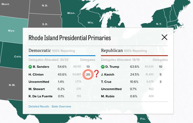 There are very few bellwether States in the Presidential primary process (at least as far as this blog is concerned) and one of them is the Biggest Little State in the Union filled with free-thinkers, misfits and crotchety old New England types who are about as provincial as it gets + assorted swells and drunken yachtsmen who congregate on the coast. Home to my favorite Hobgoblin is it any wonder that Mark Stewart tallied 270 Democrat votes (my kind of Democrat) in The Ocean State. Bernie won the Dem primary race in a landslide, as one would expect, but Hitlery walks away with the lion’s share of delegates which only gives credence to DJT’s suggestion that the constitutional monarchist should run for President as an Independent because he’s getting treated like an obnoxious Brooklyn putz by his adopted party – cold shoulder and no respect. The Bern could join Ted Cruz who announced his quasi-independent bid for the Presidency today with running mate Carley Fiorina who explained it this way: