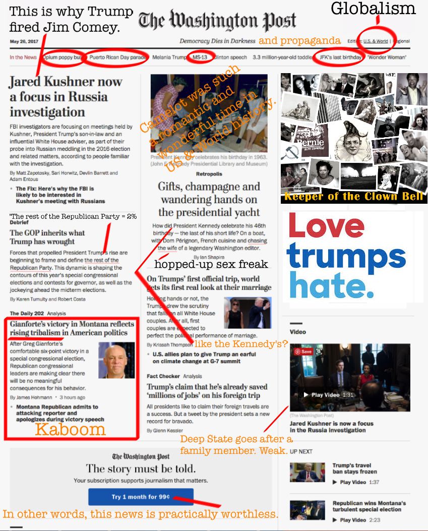 But reporters don’t hold other, more dangerous tribes, to the same standards – examples from yesterdays home page include Opium from the Taliban tribe, National financial ruin from the Puerto Rican tribe, murder and rape but the MS-13 tribe, wistful memories by the JFK tribe (hey, you left out ISIS). The mind reels when you see a warm nostalgia piece detailing JFK’s birthday on the presidential yacht and his attempted adultery with the editors wife just above a snarky piece ridiculing the Trump marriage. Who, exactly, is the tribalist here?