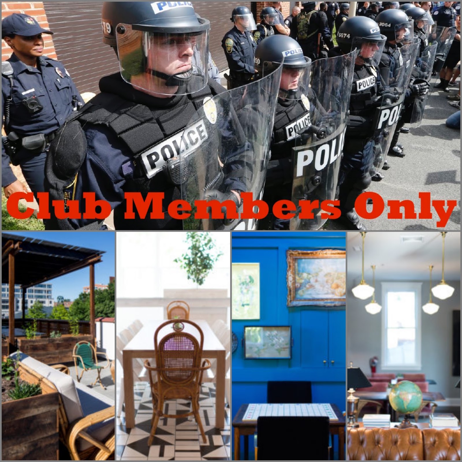 I escaped Manhattan (and other cities) to avoid this crap but the crap has seeped out of the cities and flowed down the asphalt tributaries to small towns all across the country bringing the “civic sprit” of authoritarian control in the name of do-gooderism (one of the worst ism’s there is). How do I know? Because bastions of protection have started to emerge in these small time communities which is a sure sign that people need a safe zone from the society they “live” in. Take the Common House as an example… What? No, I’m not talking about some government building or civic center. I’m talking about Common House – a new private club just off the C-ville downtown mall where like minded people can go, relax, have a drink or dinner, play bridge or billiards and pay, pay, pay for it. Today the club even sent out an email inviting it’s members to come on down and watch the crazies in the street from high atop the rooftop deck (I tried to get a copy of the email but nobody will send it to me). Insulated from the riff-raff a man can stretch out and enjoy himself amongst friends or, at least, amongst other people who crave insulation from the riff-raff – it’s grand.