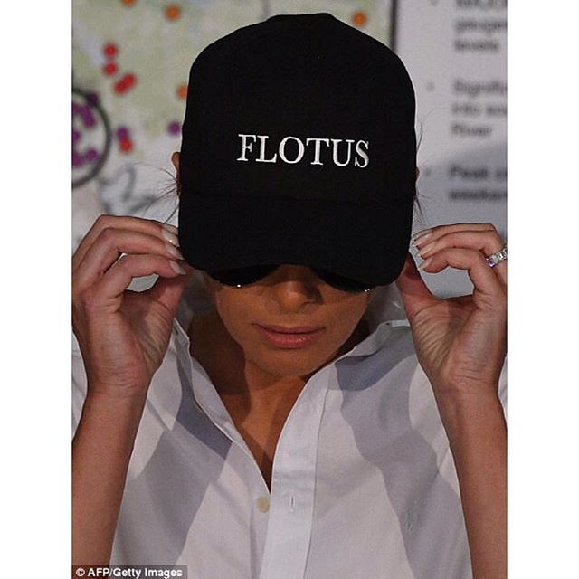 There are many great and wonderful things about the Trump presidency but near the top of the list (and for my money it’s at the very top) is the Slovenian-American beauty named Melania Trump. What a knockout!!! She is, hands down, the most beautiful FLOTUS this country has ever had and when I watch her cat walk up to the podium and recite the Lords Prayer in her stilted SlovEnglish accent I just fall in love with her all over again. What balls (or whatever it is that women have) to go on out there and just do it baby like you own the place (which you do) and fuck all the haters who run you down because you grew up in a soviet cinder block cube and God’s hand directed you to the White House before the age of 50. Absolutely awesome and it makes me proud to be an American when I see her step off of Air Force One looking like a million buck and knowing there’s not a first lady from any other country on the planet that can touch her in the grace, beauty and sex appeal category. She can do anything – she can even wear a hat with the words “float us” to the worst flood in US history. Take that Maria Teresa Thierstein Simões-Ferreira Heinz Kerry! You could have never pulled that off and the idea of watching you and the silver spooned surfer milling around the Katrina disaster (you would have been FLOTUS if JFK had won) fills me with dread. Or how about this?