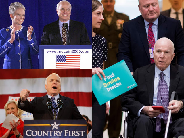 “Country First” was the campaign slogan dreamed up by McCain’s consultants for the 2008 presidential contest against Barack Obama (“Yes We Can”) and it’s bland demand to subservient allegiance stands is stark contrast to Trump’s admonition that it’s time to “Make America Great Again.” Country First is the way to say “America First” when you don’t want to say America First because that would cast you as a Nazi sympathizer which is, of course, what all Republicans actually are in the eyes of the NYTimes, Politico and any of the JournoList 400, like Michael Hirsh, who cover politics for the #FakeNews scum. So when Hirsh pens an article for Politico titled John McCain’s Last Fight you kinda know how it’s going to turn out before you even read paragraph #1 which is as follows: