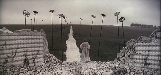 It is explained early on in the film that Loudon is a walled city where Protestant and Catholics live amicably together and that Richelieu is on a mission to tear down the city walls of every hamlet so that they might become part of greater France while driving Huguenots into exile or breaking them on the wheel. Grandier objects to this plan and makes an impassioned speech to the townspeople on the value of walls in maintaining their independence and freedom from the nationalist zealots who would destroy them all.