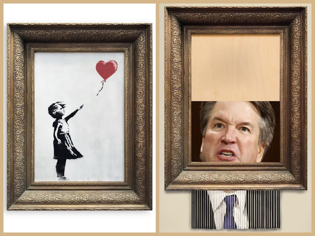 On Saturday afternoon the final votes were cast and the gavel came hammering down which triggered the shredder and turned that little girl striving for a goal floating just out of reach (Coach K) into sliced ribbons of pulp. What the new Brett Kavanaugh will be like is unknown but my guess is that he’ll make Justice Clarance Thomas look like David Souter when it comes to “originalism” and strict interpretations of constitutional principles. What artist will capture the moment and record this transformation for future generations to look back on and contemplate the magnitude of this moment in American history?