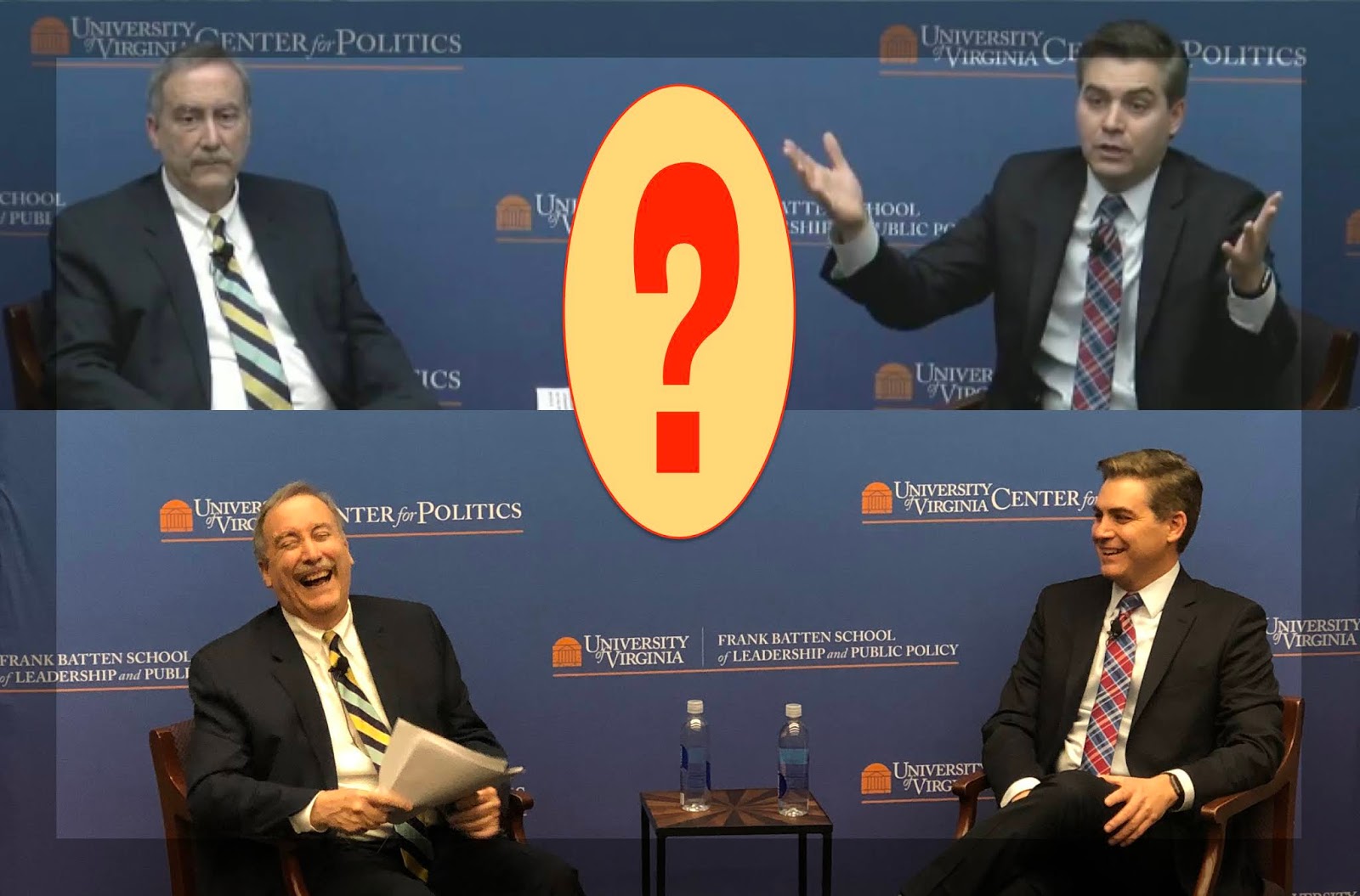 Last night Jim Acosta sat down for an interview with Larry Sabato at a national symposium series presented by the University of Virginia’s Center for Politics titled “Democracy in Perilous Times.” The evening’s topic was “The Fourth Estate: Enemy of the People?” and the crowd was warmly receptive of Acosta’s message which, boiled down to its essence, is that Donald Trump is a liar and he’s making life dangerous for reporters. Sabato introduced Acosta to the audience as Enemy #1 which drew mirthful laughter from the auditorium and then presented a short video montage of President Trump and his deplorable rubes insulting the reporter on many occasions over the past two years. This was all a set up for his first question which was, “how do you do your Job?” Acosta said the he accomplishes his duties by maintaining focus, reporting the story and telling the truth but acknowledged that it is difficult when the White House erodes the peoples faith in the press by bullying reporters. When asked what Trump supporters were like he claimed that they were “folks who get their information in silos” and want to scream at him (Acosta) while simultaneously asking if he’ll join them for a selfie. Sometimes Trump supporters will apologize for their behavior after the encounter and that gives Jim hope.