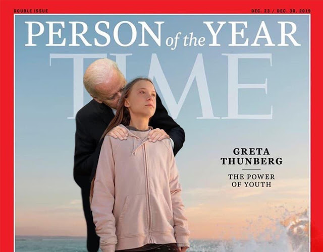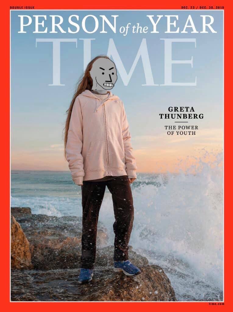 If Time Magazine thinks some random NPC with a PR agent and some unknown financial backer is a “person” then Clear Pill the editors and reboot their mind. Why not choose the Yellow Vest protesters in France or the Honk Gong protesters in Jina? How about Modi from India or Bolsonaro from Brazil or “two faced” Justin Castro from Canada? I could probably think of 100 persons more important than Greta – how about “lunch-bucket” Joe Biden?